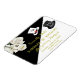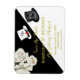 Romantic and unique black and white floral budget Save the Date. Gold lettering to set it off and a black top hat for the gentleman and a white hat for the bride-to-be. Carefully labeled "Ms. and Mr." to change as the event draws closer, of course. For any design questions or additional customization and / or matching items, just send an email to charmdesignstudio@rcn.com and we'll be delighted to assist.