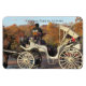 Magnet -- One of the famous horse and carriages in Central Park, NYC. Lovely autumn view of the changing colors while driver sits waiting for his next fare.
