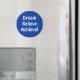 Blue magnet with words Dream Believe Achieve! in white lettering.