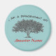 Ancestor - Descendant. Display your family name with a magnet. Curved text "I am a descendant of:" over oak tree. Ancestor name is entered in available template.