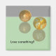 Two orange glass marbles with reflections on light green table top. Use this magnet to keep track of important memos, etc. Text at bottom reads "Lose something?"