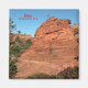 A magnet showing a red sandstone feature from the upper east "slick-rock" area of Zion National Park stands lit in the early morning golden light, with tall ponderosa pines punctuating the ocher rocky landscape here and there. The small sandstone mesa showcases the unique geology that can be found in this portion of the park. The main colors and components in this image are red and ocher rock, blue sky, and green pines. Text can be personalized: change it, resize it, use a different font, or remove it completely.
