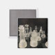 Magnet with image of chess pieces with black background.