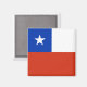 This magnet prominently displays the design of the Chilean flag, characterized by its blue square with a white star in the top left corner, white band across the middle, and red band below. The vibrant colors and iconic star represent Chile's rich history, sky, snow-covered Andes, and bloodshed for independence.