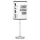I have purchased other similar lamps. I use them as extra light for guest's. They are inexpensive, easy to assemble and good height for reading. I like that there are many pre-made shades to choose from and that, like this one, you can use your own art.