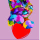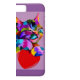 A vibrant phone case featuring a colorful, stylized illustration of a cat with a playful expression. The cat, rendered in a spectrum of bright hues, appears to nestle against a large red heart. The background is a soft lavender enhancing the cat.