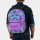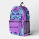 This Backpack features magnificent hydrangea blossoms combined into a lush, floral pattern. For all flower lovers! Colors in turqouise, lavender, blue. Custom text and color!