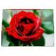 Magnificent red rose with morning dew drops. Beautiful red rose flowering in the garden. Red rose rosarium.