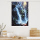 Magnificent breath taken waterfall in the forest with the sun shining through the tress. This is a AI generated art.