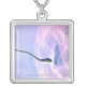 Magnified look at a sperm fertilizing an egg silver plated necklace