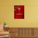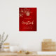 This modern Chinese wedding guest book poster features a golden Magnolia branch and a round double happiness symbol on a pretty red floral shimmering background.