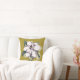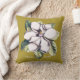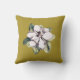White magnolia flower with green leaves on a mustard background with monogram name design. Vintage botanical drawing.