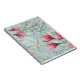 Beautiful custom vintage spiral notebook design featuring pink magnolia flowers and paint splatters on a old crumpled light blue damask patterned paper background. It's a great way to add a unique and beautiful touch to your daily notes. The text is fully customizable.