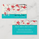 Magnolia flowers red turquoise blue custom floral business cards, featuring a beautiful modern magnolia branch design with red flowers, buds, a bird on ivory and blue solid color at the bottom. Great for a florist, textiles or for a personal profile card.