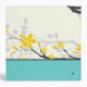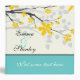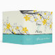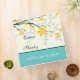 Magnolia flowers yellow turquoise custom floral wedding planner/organizer binder, featuring a beautiful magnolia branch with yellow flowers, buds, a bird and turquoise solid color at the bottom. Ivory, yellow, turquoise, black, grey. Great for a spring or summer wedding.