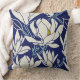 Magnolia graphic in indigo pattern throw pillow