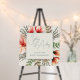 Floral nature themed wedding sign for an easel. Pussy willow branches and magnolia flowers are part of the design that is beneath an ecru colored square panel for a layered appearance. Thin script is used for the names of the couple and the names are large and offset with the top name aligned left and the bottom aligned right. Include one more line of printed text for the date and location of event, or other. You may choose a smaller size, but not bigger than the 20 inches square for the design to work.