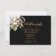 Beautiful white Magnolia blossoms and gold wedding rings on a black background and gold text.