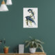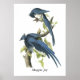 This is a print of two male Magpie jays. This jay is a blue with a white chest. They have a crest on their heads. their tail is long and trimmed in white on the shorter tail feathers on the side.