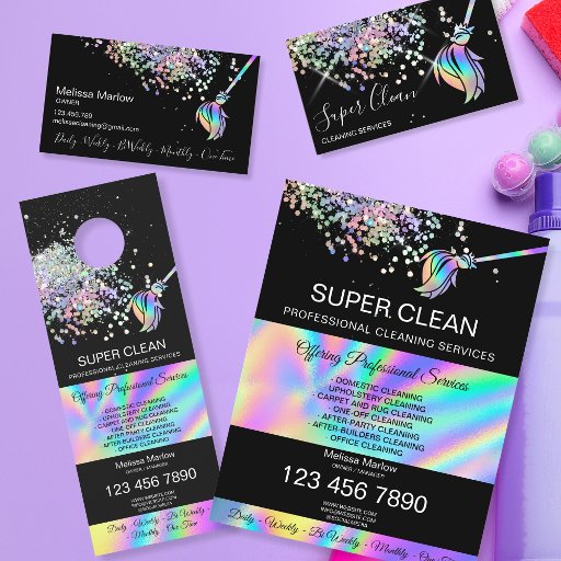 Maid Cleaning House Sparkling Holograph Business C Business Card