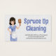 Maid Holding Duster | Soap Bubbles business card is for those in the house cleaning industry.
