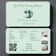 Professional business card designed for maid and house cleaning services with a fresh green color palette. The layout includes space for photos and a QR code to share online information while keeping the design clear and easy to read. Ideal for cleaning companies, independent cleaners, and housekeeping services. Fully customizable text, photo placement, and QR destination with a print-ready layout.