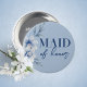 Maid of Honor Blue Bridal Shower Pin on Button. Featuring beautiful elegant dusty slate blue watercolor flowers on a light slate blue background. Check out the other matching buttons in the collection for other important guests such as the maid of honor, mother of the groom, bridesmaid's and more!