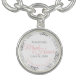 These charm bracelets are designed to give as favors to the Maid of Honor in your wedding party. Designed to coordinate with our Pink & Gray Elegant Wedding Suite, they feature a simple yet elegant design with a white background, Pink & Gray, and a silver faux foil floral border. Perfect way to thank your Maid of Honor for being a part of your special day!