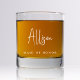 Chic modern keepsake whiskey glass for your maid or matron of honor to celebrate with at your bridal shower, bachelorette party, rehearsal dinner, reception and other wedding events. Personalize with her name in a stylish white calligraphy script and her role in elegant white serif typography.
