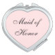 Compact mirror shown in a heart shape with a blush pink background color with Maid of Honor text in black.