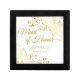 This beautiful keepsake or jewelry box is designed as a wedding gift or favor for the Maid of Honor. Designed to coordinate with our Gold Foil Elegant Wedding Suite, it features a gold faux foil flourish border with the text "Maid of Honor" as well as a place to enter her name, the couple's name, and the wedding date. Beautiful way to thank her for being a part of your special day.