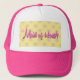My best friend was getting married so I wanted to have a fun truckers hat made for her for her bachelorette party (she is known for always throwing a hat on whenever we go out). I was able to put my own saying on the hat (it was sassy, but fun) and everyone really loved the hat. The color was exactly as displayed on my computer which is always nice. You can tell it is a quality made hat and is durable and could stand many more bachelorette parties to come. I was very impressed with this website for a few reasons: (1) I was able to design my own hat (and the website was super user friendly!) (2) The hat was affordable, especially for being custom-made and (3) The hat arrived on time and was everything I was hoping it would be. Printing was exactly what I had pictured and what I saw on my screen when I was designing it. No flaws in the stiching - everything looked perfect. I was very impressed with the hat and have no complaints.