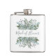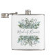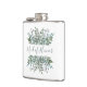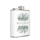 This rustic greenery flask features the words "Maid of Honor" in modern sage green handwriting, framed above and below by watercolor foliage and berries in subtle shades of green, gray, and blue.