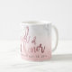 Maid of Honor mug, modern handwritten script in faux rose gold and blush pink glistening snow bokeh with a heart mugs