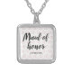Maid of Honor Wedding Ring Pattern and Name Silver Plated Necklace