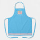 Colorful maid service apron done in corn flower blue with graphics of a pink ribbon, across the bottom, and a laundry basket, on the bib. White text is ready to personalize for your business or as a fun gift idea.
