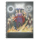 This notebook features my triple Goddess image of Hekate. The braids of the Maiden, Mother and Crone are woven together showing that all three aspects are the same deity. Each aspect holds a distinct item; key, torch, and dagger. They are surrounded by a cauldron of swirling flames, the dark moon, and Hecate's Wheel. Two black dogs stand beside them, adding to the mysterious atmosphere, while the triple moon phase crown adorns the background.