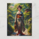 Maiden of the Green Garden - (Midori no Sono no Otome) - This artwork depicts a solitary woman in traditional Japanese attire, a kimono, walking along a winding stone path in a lush garden. Her dress features a mix of soft greens, muted grays, and deep reds, with subtle floral patterns. She carries a small, woven basket filled with what appear to be red flowers.