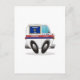 A whimsical cartoon Wisconsin postal truck with a state flag postage stamp on its side and the capital of on the door ready to deliver your mail.