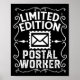 This funny mail carrier post office lady post workers design reads limited edition postal worker. post offices to provide delivery service for medicine as postman or mail lady into a post box with a parcel or envelope . The design features a retired postal worker design as a christmas gift or retirement celebration idea for a mail lady or mailman. ,a Stamp.