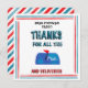 Cheerful and Colorful Mail Box with block letters Thanks for all the mail and deliveries. Watercolor red and blue diagonal lines in the background. Customize and personalize card if you know their name.