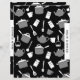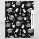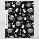 Custom double sided recipe divider page for a black, white and gray kitchen utensil cookbook recipe binder kit. Features a fun and whimsical kitchen cookware and utensil pattern in a black, white and grey color palette with customizable text presented on a coordinating banner.