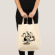 The printing came out very well, better than I had anticipated. The natural color fabric is sturdy with strong seams and comfortable handles. This tote fits easily over my shoulder. As it is filled, the bottom flattens out--very cool! I would buy this product again. This grocery tote holds a lot of groceries! The image quality was very good. The colors were a little darker than I had expected. The darkness may have been due to printing on a natural color fabric rather than on white. The cat design is attractively centered on the tote. The spirit of the design is very lively, just as it appears on the Zazzle website.