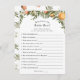 Who Knows the Bride Best? Bridal shower game card featuring a watercolor cascade of greenery and orange citrus fruit for a Main Squeeze themed shower.