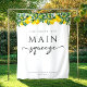 Welcome your guests with our vibrant Main Squeeze Lemon Bridal Shower Backdrop, featuring elegant calligraphy and refreshing lemon accents in yellow, green, and blue. Perfect for a spring or summer citrus-themed bridal shower, this backdrop adds a playful touch to your decor and creates a stunning photo booth setting for lasting memories!