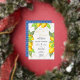 Boho-chic yellow lemons with varying shades of greenery adorning a gemstone geometric frame in gold foil with gold foil "Main Squeeze" script text. Elegant and classy for your bridal shower occasion. Back features an Italian tile look blue and white background. Composite design by Holiday Hearts Designs.