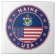 Badge of Maine with flag of Maine and flag of USA colors, rounded shape.