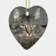 Gray tabby Maine Coon cat face heart shaped ornament with a different photo on each side