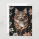 A charming postcard featuring a majestic Maine Coon cat surrounded by a lush array of vibrant flowers. The intricate details of the cat’s luxurious fur and the colorful blooms create a delightful and elegant design, perfect for sharing a touch of nature-inspired beauty.