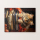 This is a puzzle of a kitten. Its imagery depicts a main coon kitten resting on a stack of books. This puzzle makes a great gift for individuals who love animals, cats, Maine Coons, and books. This puzzle's content is appropriate for individuals ages 6+. It is available in all sizes and may be adjusted by the customer.